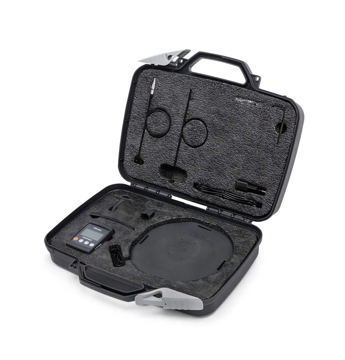 Medidor de Vibração Ocupacional para Corpo Inteiro (VCI) e Mãos e Braços (VMB). Atende as normas nacionais e internacionais de higiene ocupacional. O Vibrate juntamente com o software CrifferSuite exibe os resultados necessários para elaboração de laudos, estudos e perícias através do relatório, interpretando o AREN, Fator de Crista (FC) e VDVR.
